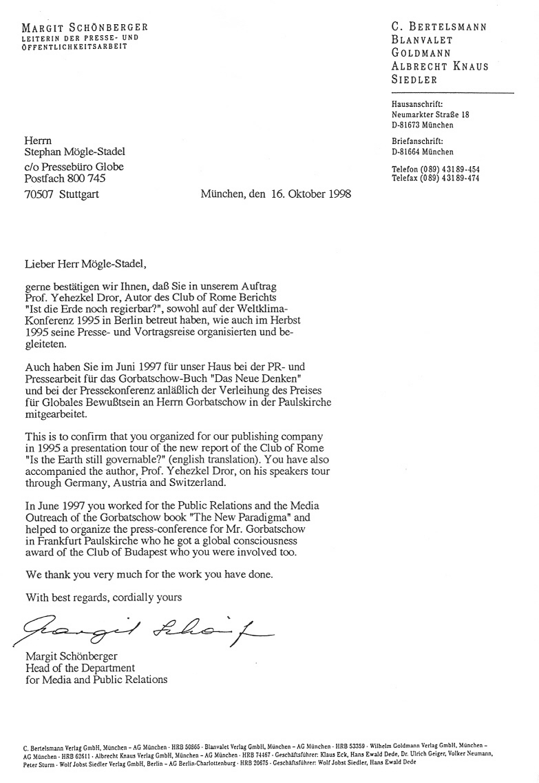 Referenzbrief Bertelsmann Verlag